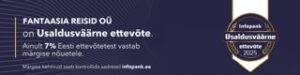 Juriidiline aadress: Fantaasia Reisid OÜ, 76606, Kanarbiku 25, Keila linn, Harjumaa, Eesti